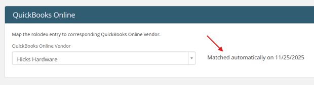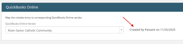 If Passare finds an exact match, it will automatically tie the QBO vendor to the Rolodex entry.