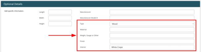 - Add item specifications (material, type, guage, etc) under Optional Details (optional)