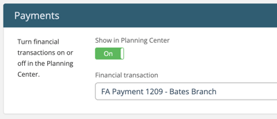 First, make sure the selected branch has Planning Center payments turned on. This is required for using Arrangement Guide payments and signatures.