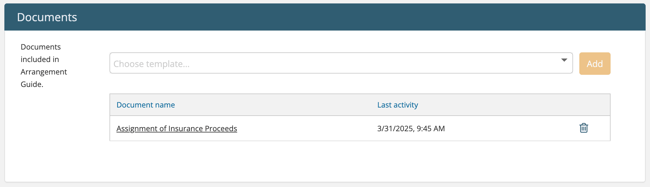Under the Documents section, select the contract template that will be used in Arrangement Guide.