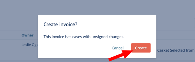 A confirmation pop-up will ask to proceed with creating an invoice with some unsigned cases.