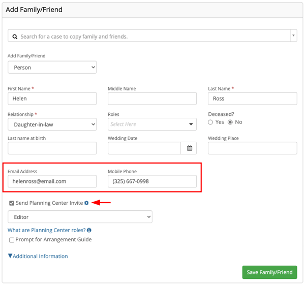 The family can use the Planning Center to fill out basic information for their loved one before or after you meet.